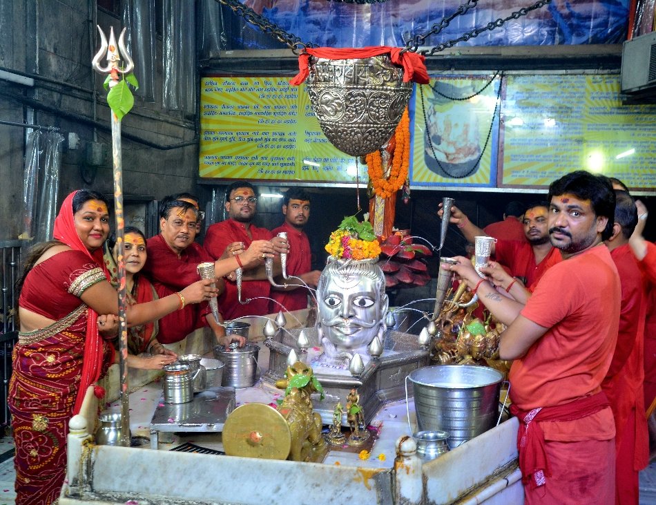 कांवड़ और कलशों से हुआ जलाभिषेक