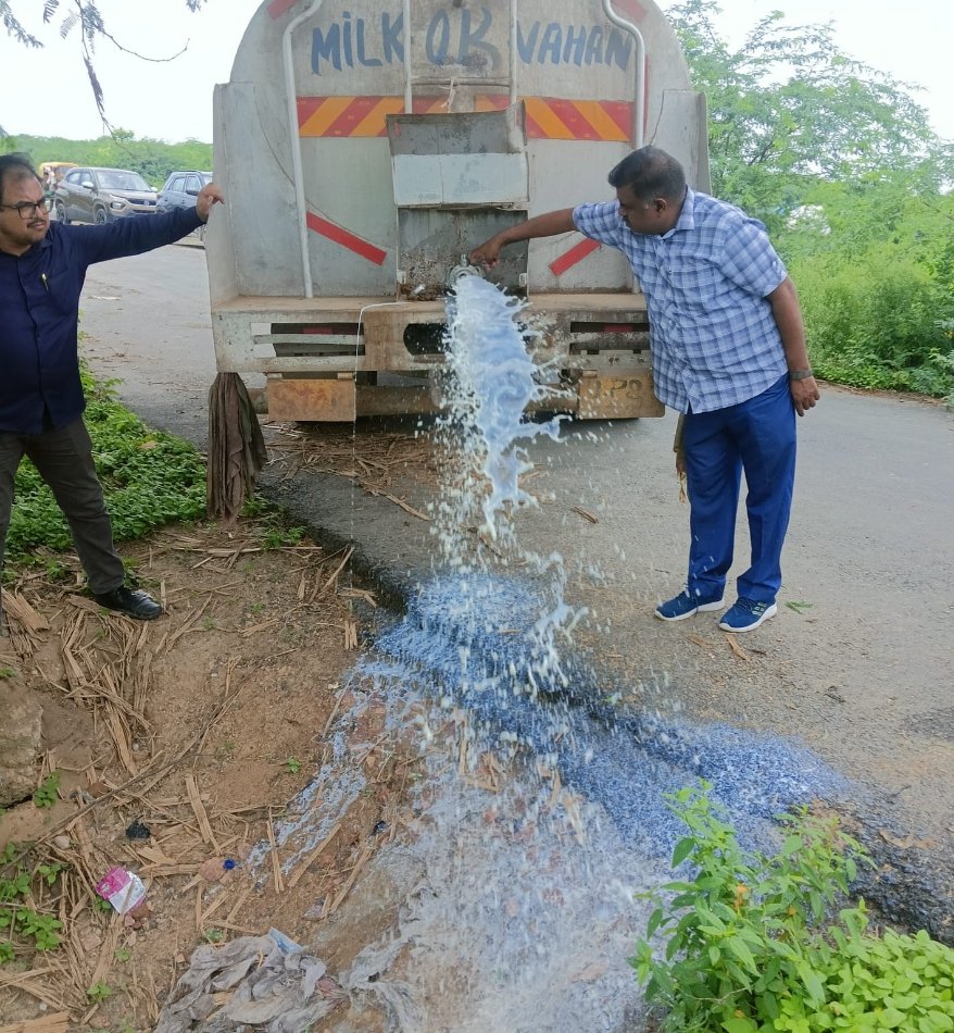 मुरैना से आ रहा पांच हजार लीटर मिलावटी दूध एफएसडीए ने पकड़ा, मौके पर ही कराया नष्ट