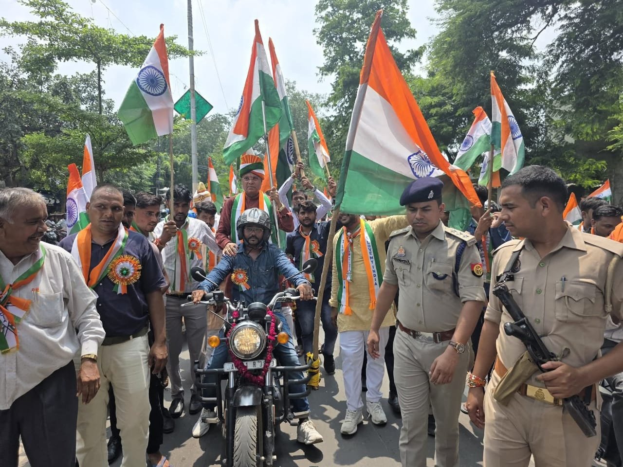 | तिरंगा रैली में शामिल उत्तर प्रदेश के होमगार्ड्स एवं नागरिक सुरक्षा राज्य मंत्री धर्मवीर प्रजापति |