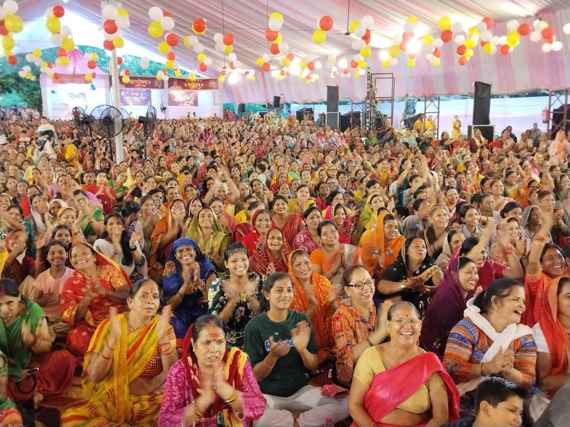 | कथा पंडाल में मौजूद महिला श्रद्धालु |