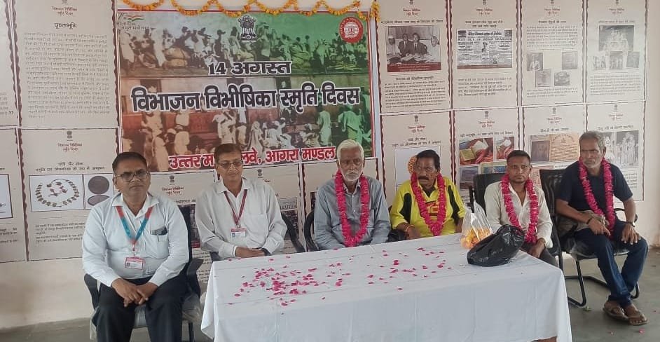 आगरा। स्वाधीनता दिवस की पूर्व संध्या पर विकास भवन सभागार में ‘‘विभाजन विभीषिका स्मृति दिवस’’ के अवसर पर अभिलेख/चित्र प्रदर्शनी और संगोष्ठी का आयोजन हुआ। इस अवसर पर विभाजन त्रासदी से विस्थापित परिवारों के सदस्यों को शॉल ओढ़ाकर सम्मानित किया गया और विभाजन की घटनाओं पर आधारित लघु फिल्म दिखाई गई। कार्यक्रम की शुरुआत में विभाजन के दौरान प्राणोत्सर्ग करने वाले लोगों की याद में दो मिनट का मौन रखा गया।