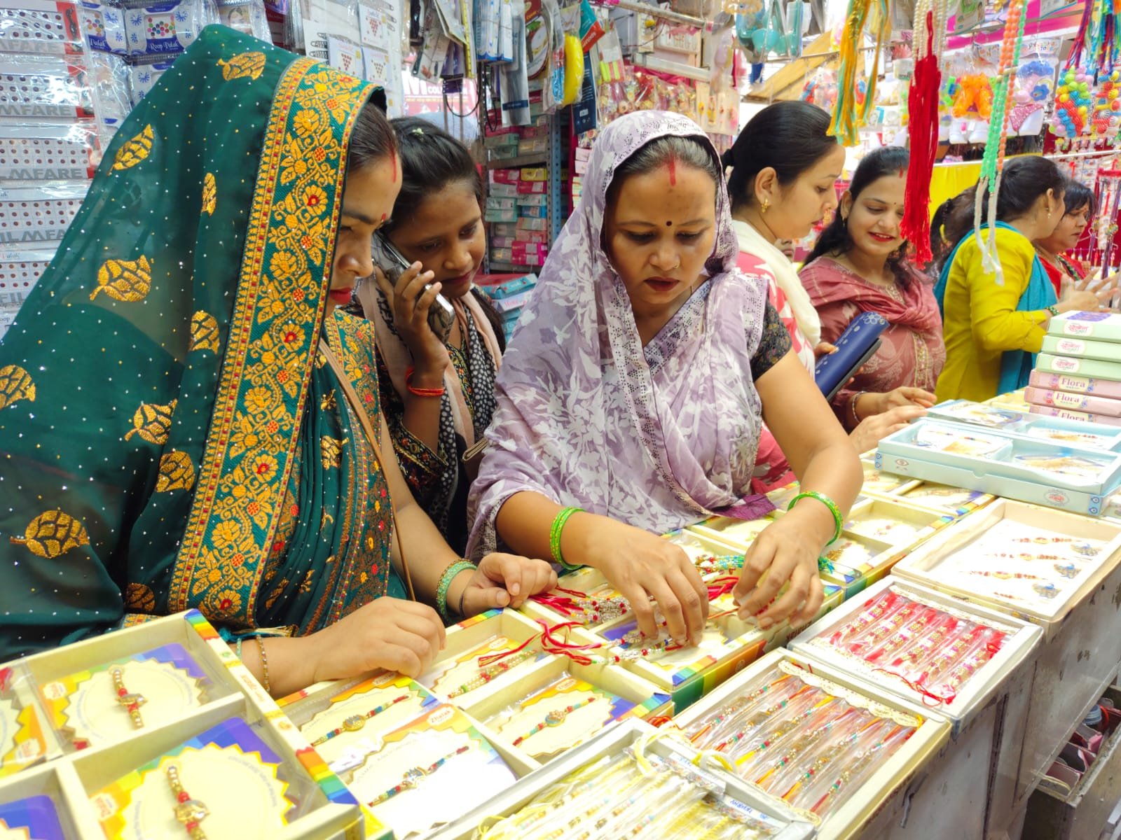मार्केट में रक्षाबंधन के तैयारियां तेज हो गई हैं, इस दौरान महिलाएं दुकानों पर राखी की खरीदारी करती देखी जा सकतीं हैं
