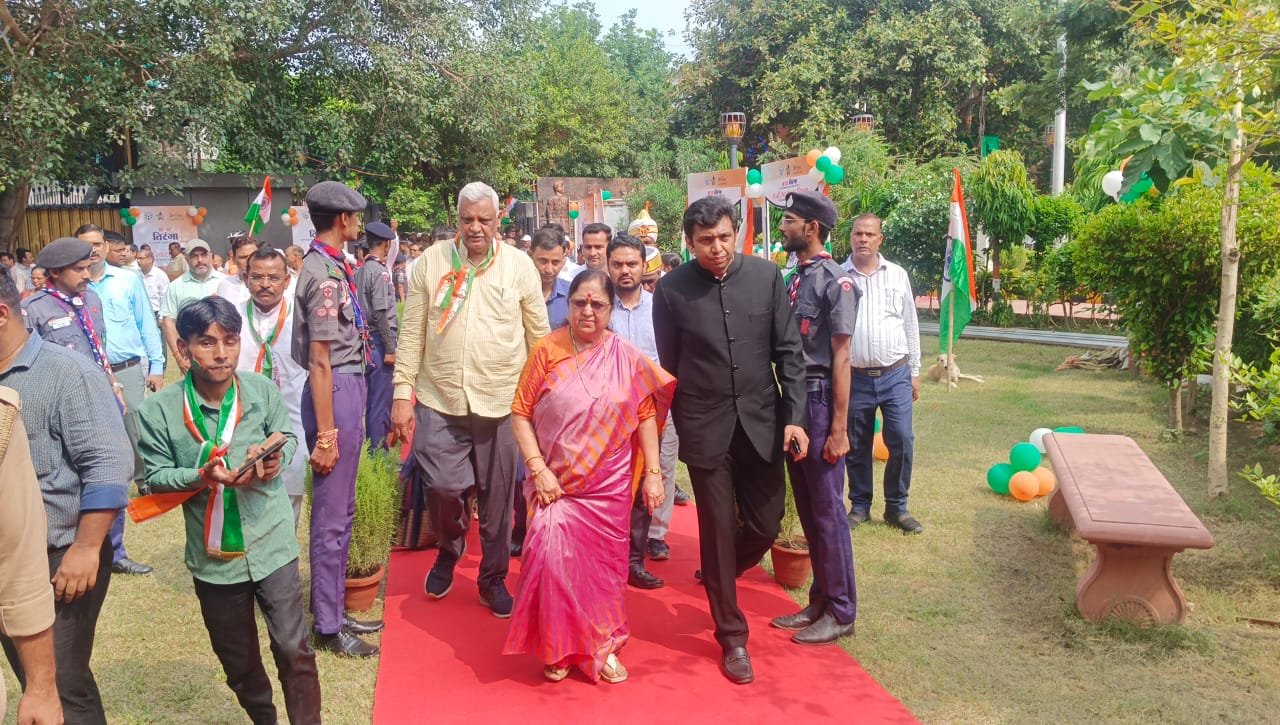| संजय प्लेस स्थित शहीद स्मारक पर आयोजित कार्यक्रम में कैबिनेट मंत्री बेबीरानी मौर्या व डीएम अरविेंद मल्लप्पा बंगारी |