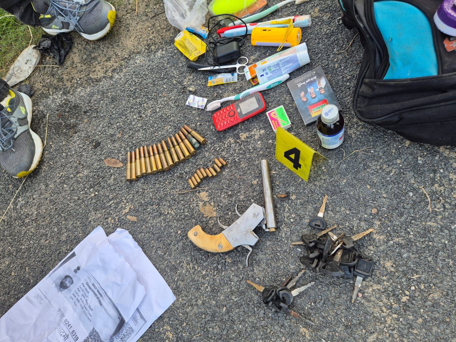 | सीतापुर में हुई एसटीएफ-पुलिस की संयुक्त मुठभेड़ में मारे गए बदमाशों से बरामद किए कारतूस, मोबाइल व अन्य सामान |
