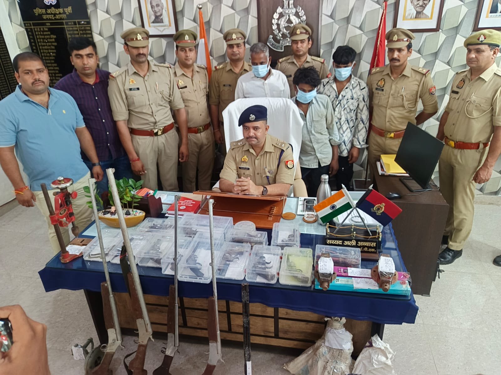 छापेमारी के दौरान पुलिस ने मौके से तीन लोगों को गिरफ्तार किया। इनमें सियाराम, सचिन उर्फ विभीषण और रघुवीर पुत्र नवाब शामिल हैं। पुलिस के अनुसार, सियाराम इस अवैध धंधे का मुख्य कारीगर है। वह पहले भी इसी अपराध में जेल जा चुका है। हथियार बनाने में बेहद निपुण होने के कारण वह ऑर्डर मिलने पर स्थान बदल-बदलकर फैक्ट्री चलाता था। उसके नेटवर्क का दायरा आगरा से बाहर तक फैला हुआ है।