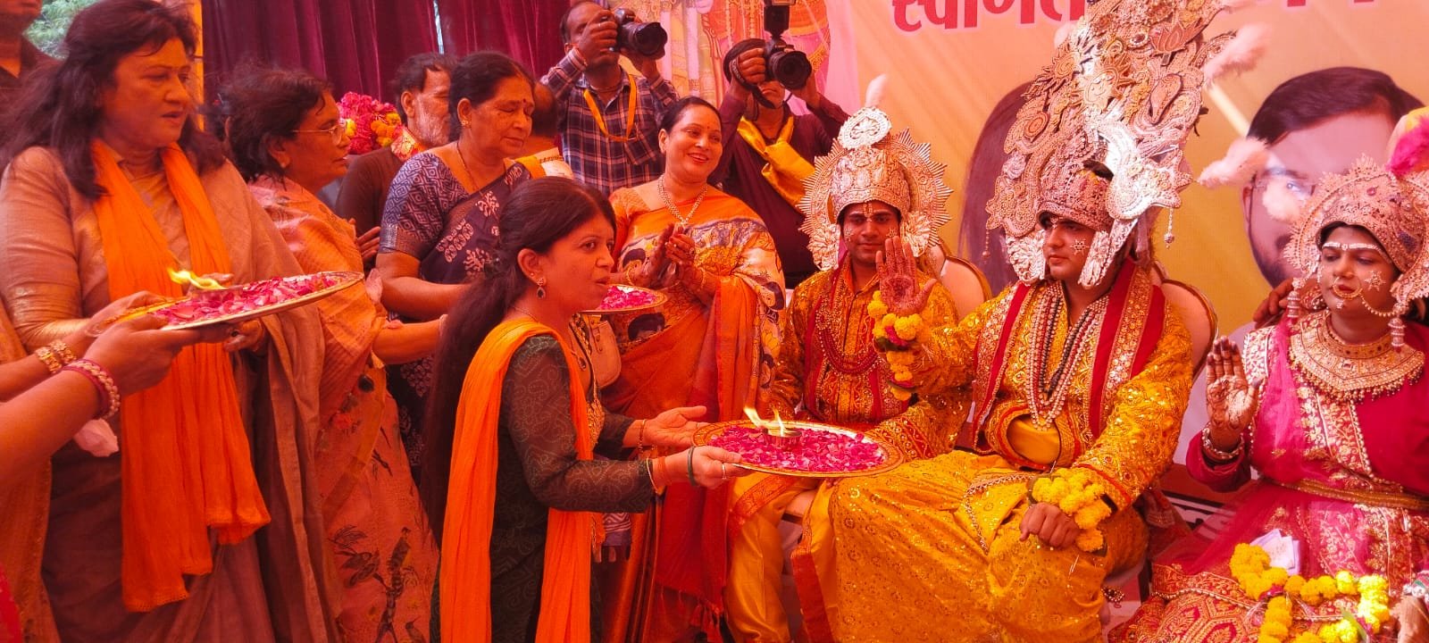 आगरा। शनिवार को कमला नगर स्थित सद्भभावना पार्क में श्री जनकपुरी महोत्सव आयोजन समिति के अध्यक्ष मुरारी प्रसाद अग्रवाल द्वारा प्रभु श्री राम दर्शन एवं भव्य स्वागत का कार्यक्रम आयोजित किया गया। इस दौरान भक्ति और उल्लास का अलग ही नजारा था।