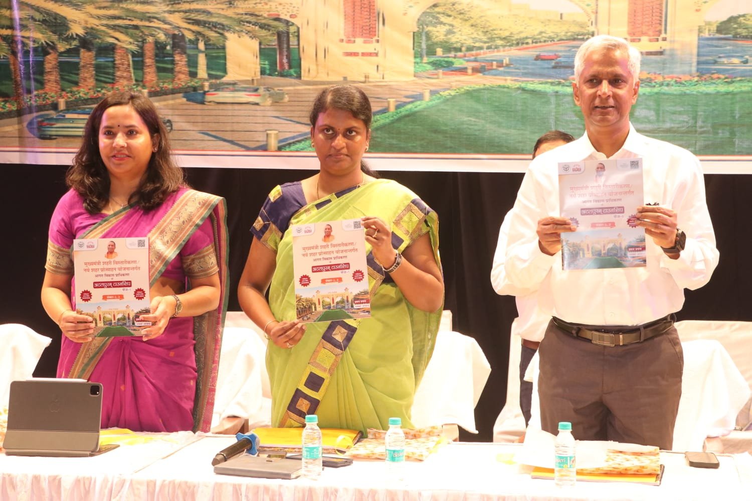 | सूरसदन में भूखंडों के आवटंन से पहले अटलपुरम टाउनशिप का ब्रोसर लांच करते कमिश्नर, एडीए वीसी व एडीए की सचिव |