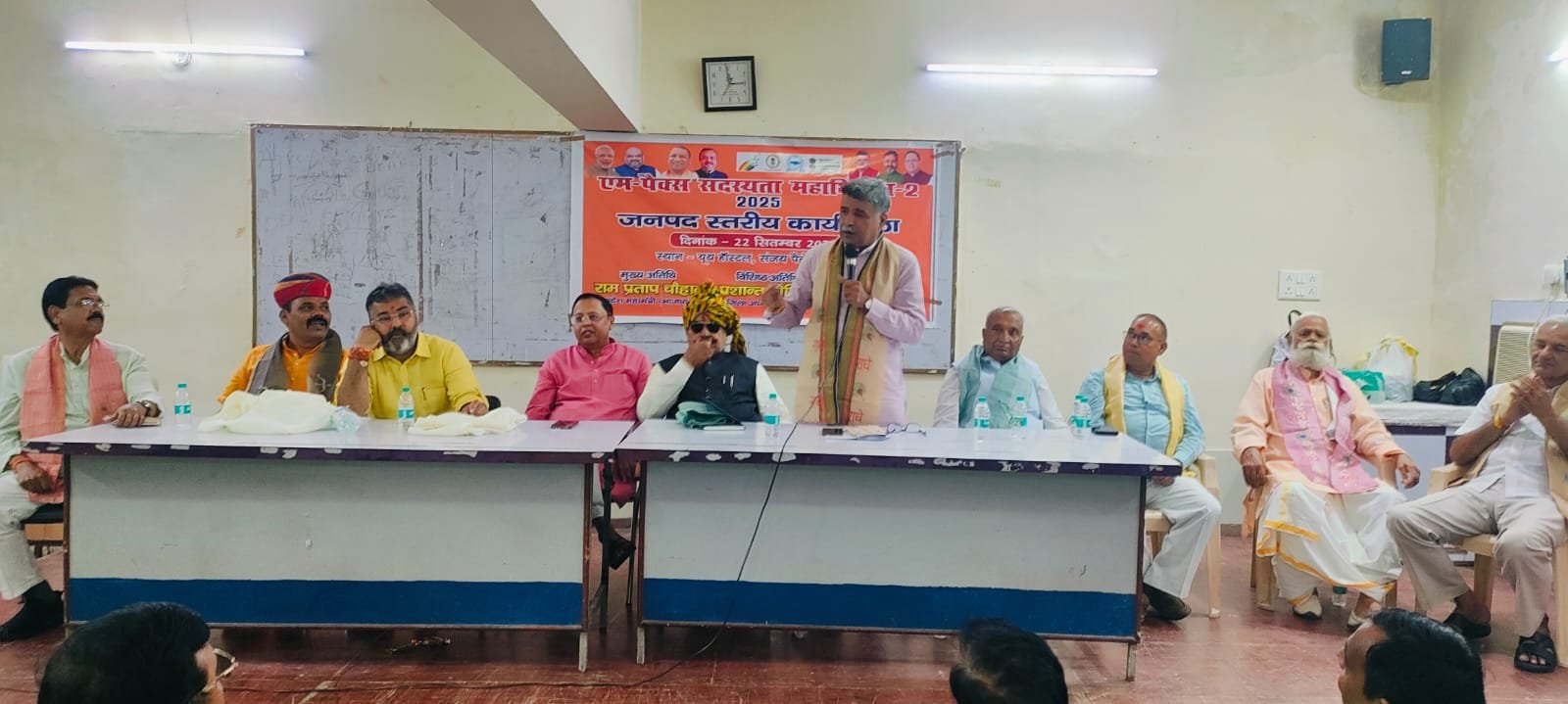 | संजय प्लेस स्थित यूथ हॉस्टल में आयोजित वर्कशॉप में बोलते पदाधिकारी,मंचासीन हैं प्रमुख जनप्रतिनिधि |