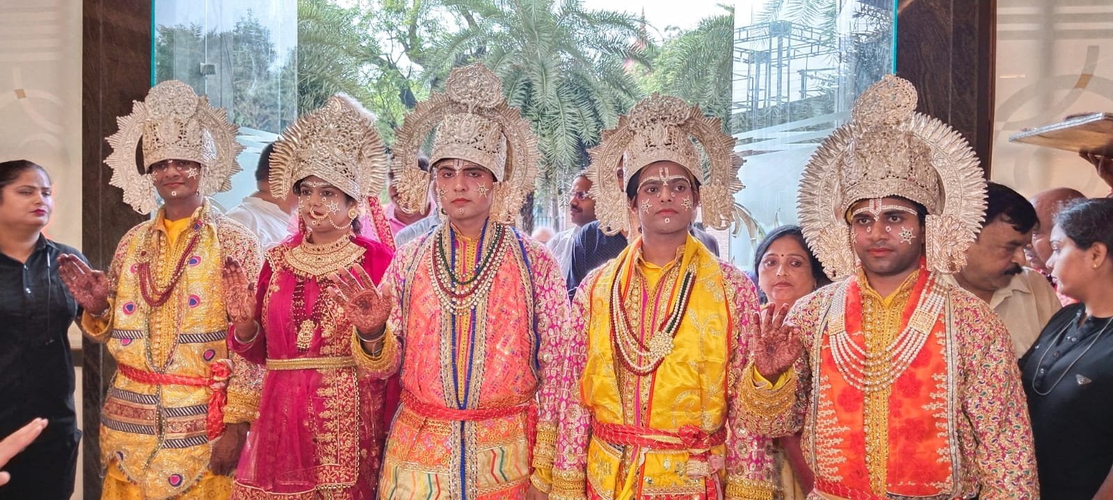 रेड कार्पेट पर मुंबई के कलाकारों ने प्रभु राम, माता सिया और अन्य स्वरूपों की आरती करते हुए मुख्य मंच तक अगवानी की। जैसे ही माता जानकी के साथ प्रभु राम के दिव्य दर्शन मिथिलावासियों को हुए, जयकारों के साथ छायाचित्र लेने की होड़ मच गई। जनक परिवार द्वारा प्रभु के स्वरूपों की भाव भरे हृदय से भव्य आरती की गई। इस दौरान दीप म्यूजिक द्वारा दीपक प्रभाकर के निर्देशन में संतूर, जल तरंग, रबाब, बांसुरी और तबला सहित पांच वाद्य यंत्रों की सुंदर जुगलबंदी के साथ प्रभु राम और प्रभु कृष्ण के भजनों की रसधारा ने सबको भाव विभोर कर दिया।