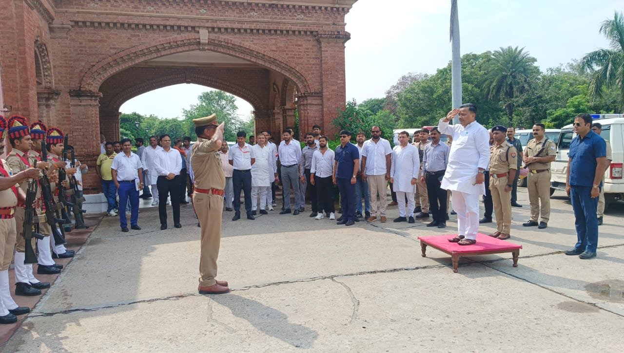 | प्रदेश के पर्यटन मंत्री जयवीर सिंह के आगरा पहुंचने पर सर्किट हाउस में गार्ड ऑफ ऑनर दिया गया |