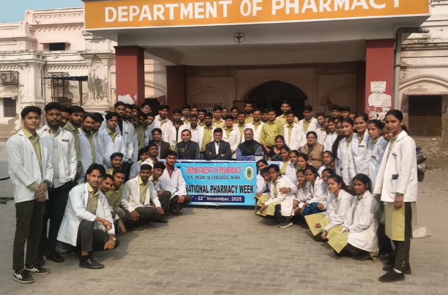 आगरा।एस.एन. मेडिकल कॉलेज, आगरा के फार्मेसी विभाग में 16 से 22 नवंबर 2025 तक नेशनल फार्मेसी वीक 2025 का आयोजन उत्साह और सहभागिता के साथ संपन्न हुआ। कार्यक्रम का संचालन प्राचार्य प्रो. (डॉ.) प्रशांत गुप्ता के मार्गदर्शन तथा फार्मेसी विभागाध्यक्ष प्रो. मोहित सक्सेना के निर्देशन में किया गया।