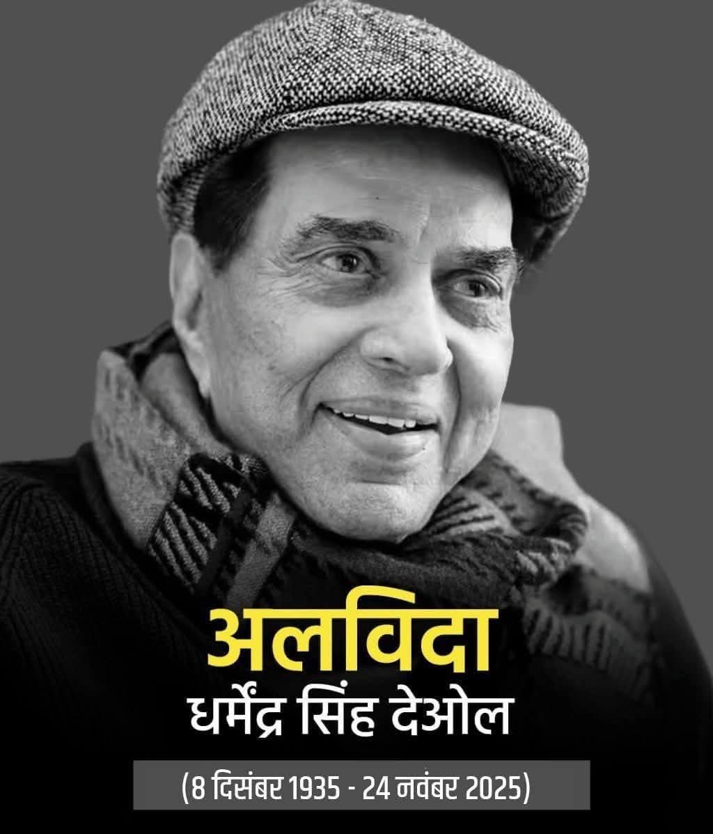 मुंबई। हिंदी सिनेमा के दिग्गज अभिनेता धर्मेंद्र का सोमवार दोपहर 89 वर्ष की आयु में निधन हो गया। धर्मेंद्र ने अपने घर पर अंतिम सांस ली। इसके बाद उनका अंतिम संस्कार विले पार्ले श्मशान भूमि में हुआ। अंतिम यात्रा में अमिताभ बच्चन, सलमान खान, शाहरुख खान, आमिर खान, संजय दत्त, अक्षय कुमार, रणवीर सिंह, दीपिका पादुकोण सहित फिल्म जगत के कई बड़े सितारे पहुंचे।