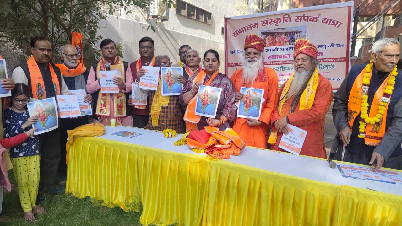 आगरा। अमेरिका के लास वेगास निवासी एनआरआई स्वामी अनल और उनकी सहयोगी माता मधु द्वारा चलाई जा रही “सनातन संपर्क यात्रा” का आज आगरा में उत्साहपूर्ण स्वागत किया गया। यह यात्रा 2 अक्टूबर को प्रयागराज के श्री चंद्रशेखर आज़ाद पार्क से शुरू हुई थी।