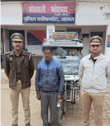 #FatehabadNews #ERickshawTheft #CrimeNewsUP #PoliceArrest #VehicleTheft #FugitiveSearch