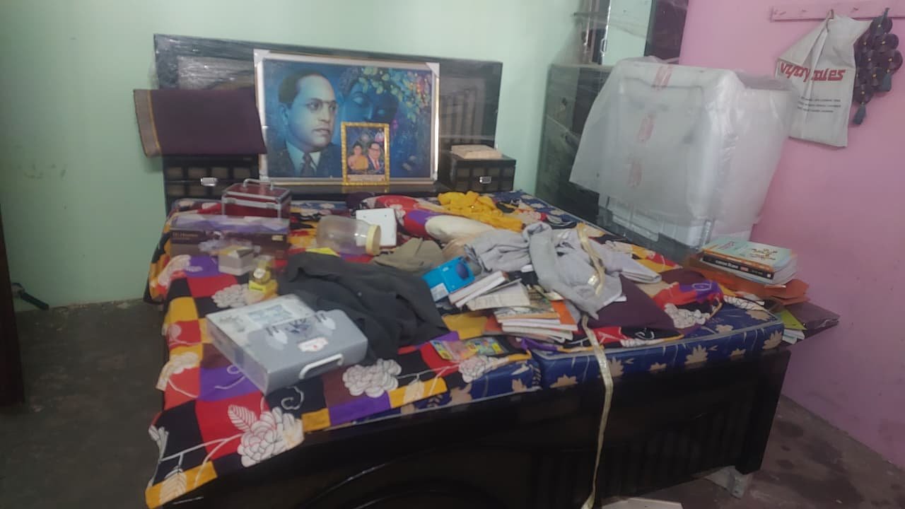 | घर में चोरी के बाद बिखरा पड़ा सामान |