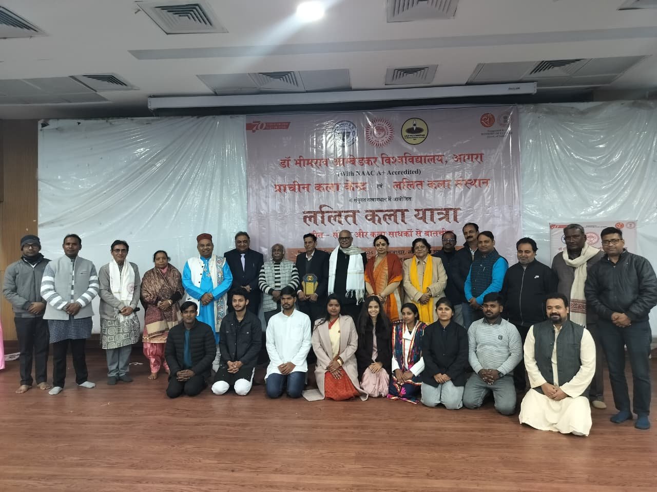 डॉ. भीमराव अंबेडकर विश्वविद्यालय आगरा के ललित कला संस्थान एवं प्राचीन कला केंद्र, चंडीगढ़ के संयुक्त तत्वावधान में आयोजित ललित कला यात्रा कार्यक्रम का शुभारंभ मुख्य अतिथि कुलपति प्रोफेसर आशु रानी, कार्यक्रम अध्यक्ष प्रोफेसर संजय चौधरी, निदेशक ललित कला संस्थान, संयोजक डॉ. देवेंद्र कुमार वर्मा बजरंग, सह-संयोजक डॉ. देवाशीष गांगुली एवं प्राचीन कला केंद्र के सचिव सजल कौसर द्वारा दीप प्रज्वलन एवं मां सरस्वती वंदना के साथ किया गया।