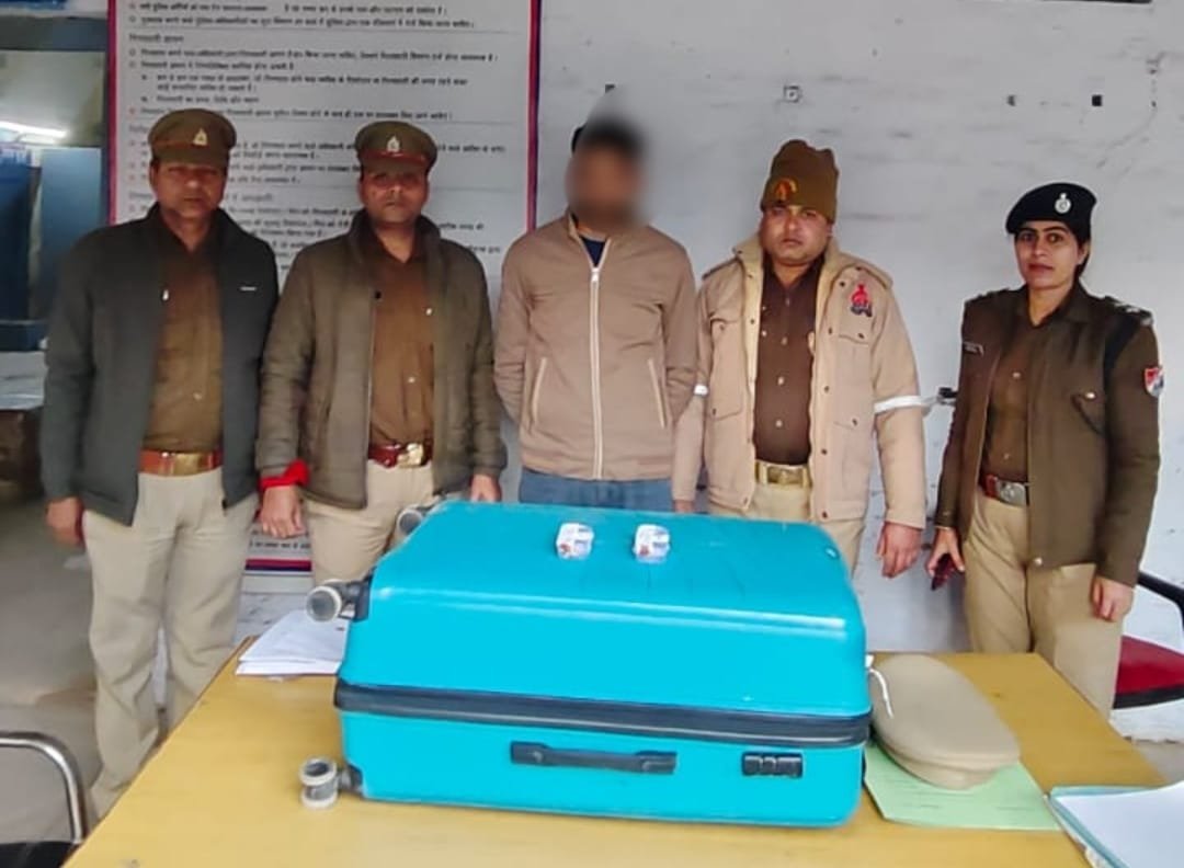 गिरफ्तार अभियुक्त की पहचान फैजान पुत्र मुबीन, निवासी 60/135 न्यू ख्वासपुरा, खेरिया मोड़, थाना शाहगंज, आगरा, उम्र करीब 26 वर्ष के रूप में हुई है। तलाशी के दौरान अभियुक्त के पास से एक अदद ट्रॉली बैग मय सामान, पीली धातु की एक नाक की बाली, पीली धातु की एक अंगूठी तथा पीली धातु की एक नोज पिन बरामद की गई। इसके अलावा वादी के बहुमूल्य दस्तावेज भी बरामद हुए हैं। कुल बरामदगी की कीमत लगभग 1,05,000 रुपये बताई गई है।