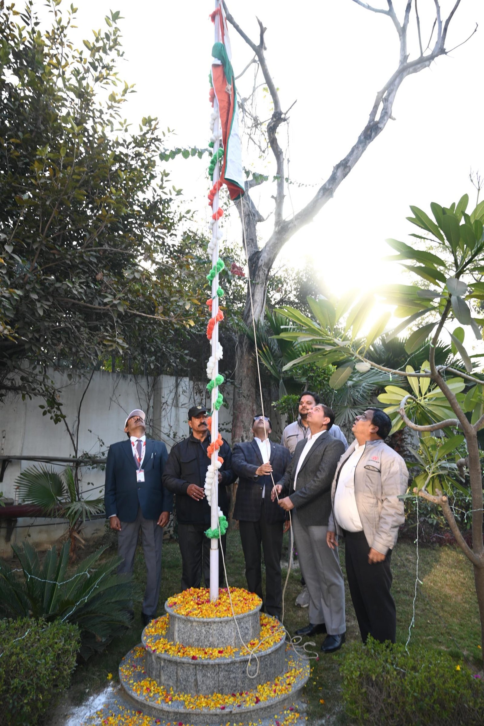 आगरा। ताजनगरी में आगरा मेट्रो रेल परियोजना के अधिकारियों एवं कर्मचारियों ने देशभक्ति और उत्साह के साथ 77वां गणतंत्र दिवस हर्षोल्लासपूर्वक मनाया। इस अवसर पर आगरा मेट्रो के परियोजना निदेशक कार्यालय में वरिष्ठ अधिकारियों द्वारा ध्वजारोहण कर तिरंगे को सलामी दी गई। इसके बाद राष्ट्रगान का सामूहिक गायन किया गया और अमर शहीदों व स्वतंत्रता सेनानियों को श्रद्धांजलि अर्पित की गई।