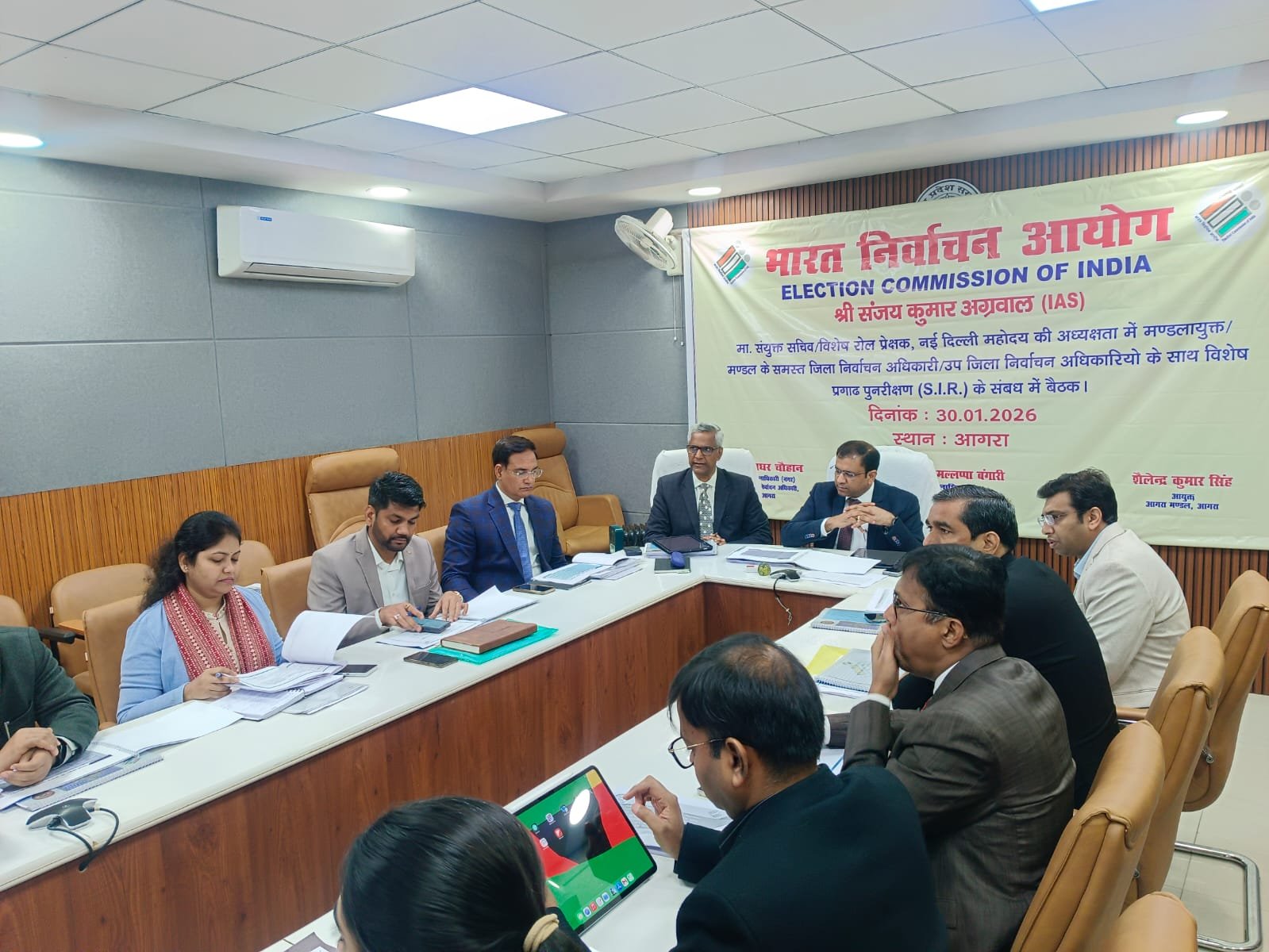 बैठक में आगरा मंडल के सभी जिला निर्वाचन अधिकारी, उप जिला निर्वाचन अधिकारी एवं निर्वाचक रजिस्ट्रीकरण अधिकारी उपस्थित रहे। बैठक के प्रारंभ में मंडल के सभी जनपदों द्वारा अर्हता तिथि 01 जनवरी 2026 के आधार पर विशेष गहन पुनरीक्षण-2026 के अंतर्गत किए गए कार्यों एवं प्रगति का जनपदवार प्रेजेंटेशन प्रस्तुत किया गया।