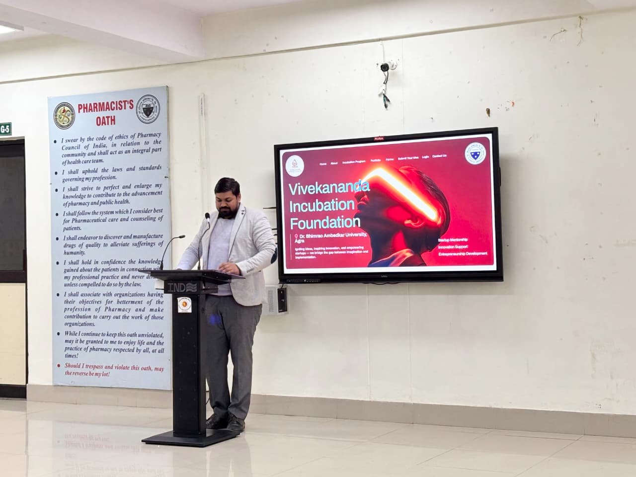 आगरा। डॉ. भीमराव आंबेडकर विश्वविद्यालय के नेताजी सुभाष चंद्र बोस छलेसर परिसर स्थित इंस्टीट्यूट ऑफ फार्मेसी एंड पैरामेडिकल साइंसेस में विद्यार्थियों को नवाचार, उद्यमिता और स्टार्टअप के प्रति प्रेरित करने के उद्देश्य से एक प्रेरणादायी सेमिनार का आयोजन किया गया।