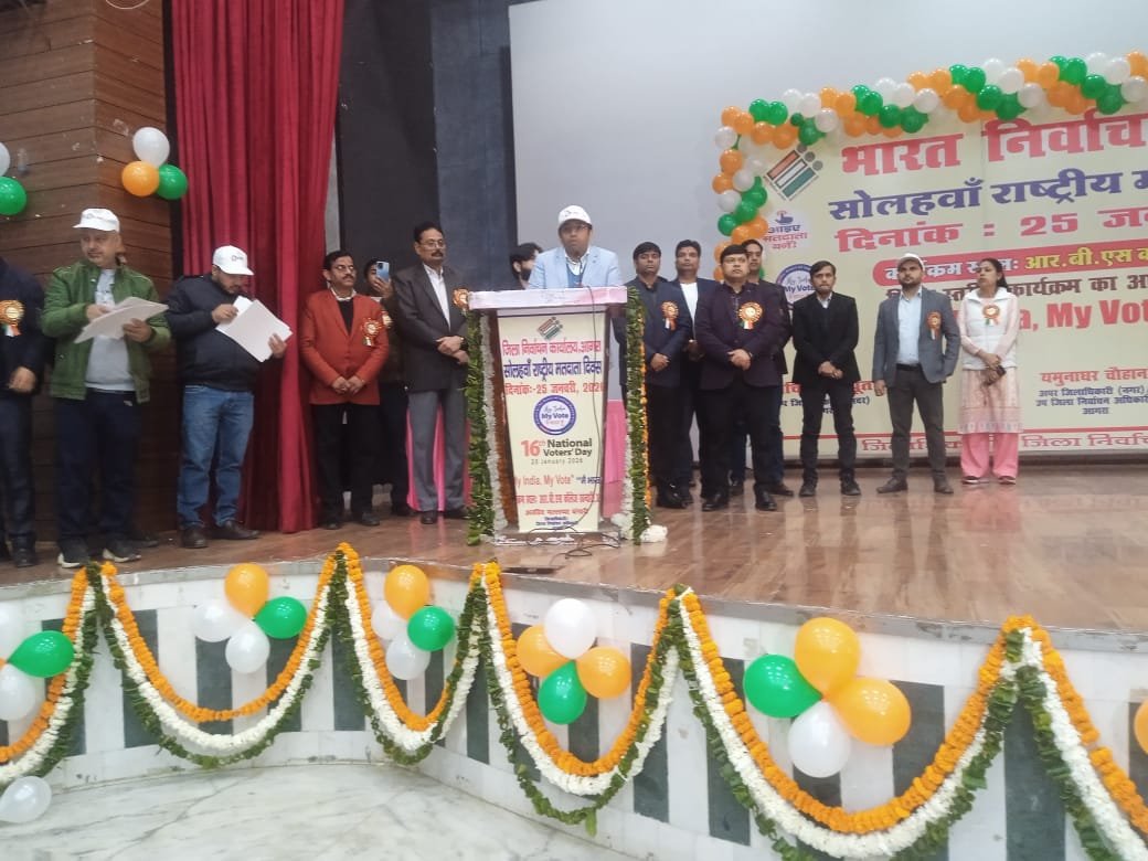 आगरा।16वें राष्ट्रीय मतदाता दिवस के अवसर पर आरबीएस कॉलेज ऑडिटोरियम प्रांगण में जिला प्रशासन की ओर से भव्य कार्यक्रम का आयोजन किया गया। कार्यक्रम का शुभारंभ जिलाधिकारी एवं जिला निर्वाचन अधिकारी अरविंद मल्लप्पा बंगारी ने दीप प्रज्ज्वलित कर किया। इस दौरान उपस्थित छात्र-छात्राओं, अधिकारियों, कर्मचारियों एवं आम नागरिकों को मतदाता शपथ दिलाई गई।