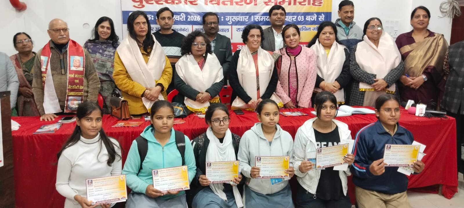 Prize winners and jury members during the Garbh Sanskar inter-college painting competition in Agra