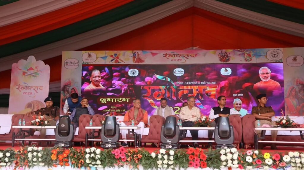 बरसाना। बरसाना स्थित श्री राधा बिहारी इंटर कॉलेज के ग्राउंड में रंगोत्सव 2026 के संबंध में आयोजित भव्य कार्यक्रम का शुभारंभ मंत्री गन्ना विकास एवं चीनी मिलें लक्ष्मी नारायण चौधरी द्वारा किया गया। कार्यक्रम में उत्तर प्रदेश ब्रज तीर्थ विकास परिषद के उपाध्यक्ष शैलजा कांत मिश्र, मंडलायुक्त नगेन्द्र प्रताप और पुलिस उप-महानिरीक्षक शैलेश कुमार पाण्डेय उपस्थित रहे।