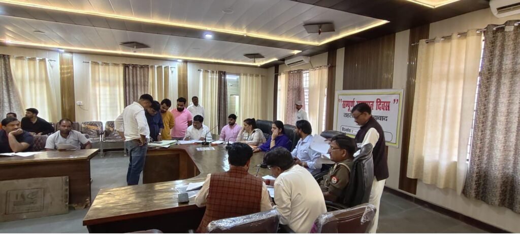 Farmers present their complaint during the inquiry meeting against Girraj Ji Maharaj Cold Storage owner at Fatehabad Tehsil, Agra.