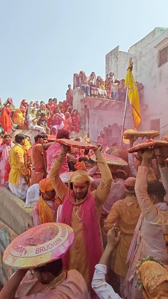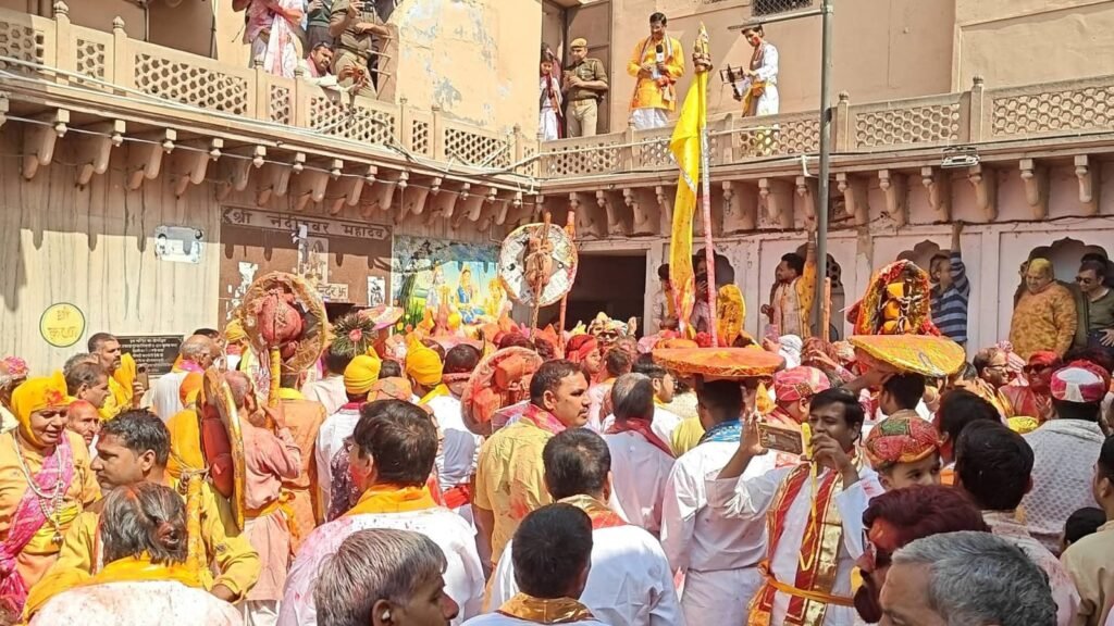 होली खेलने के बाद हुरियारों ने नंद बाबा मंदिर में दर्शन किए। मंदिर के महंतों ने भी उन पर गुलाल बरसाया। रंगीली चौक और मंदिर परिसर को भव्य रूप से सजाया गया था। श्रद्धालु छतों और गलियों में खड़े होकर इस अनोखे उत्सव का आनंद लेते रहे।