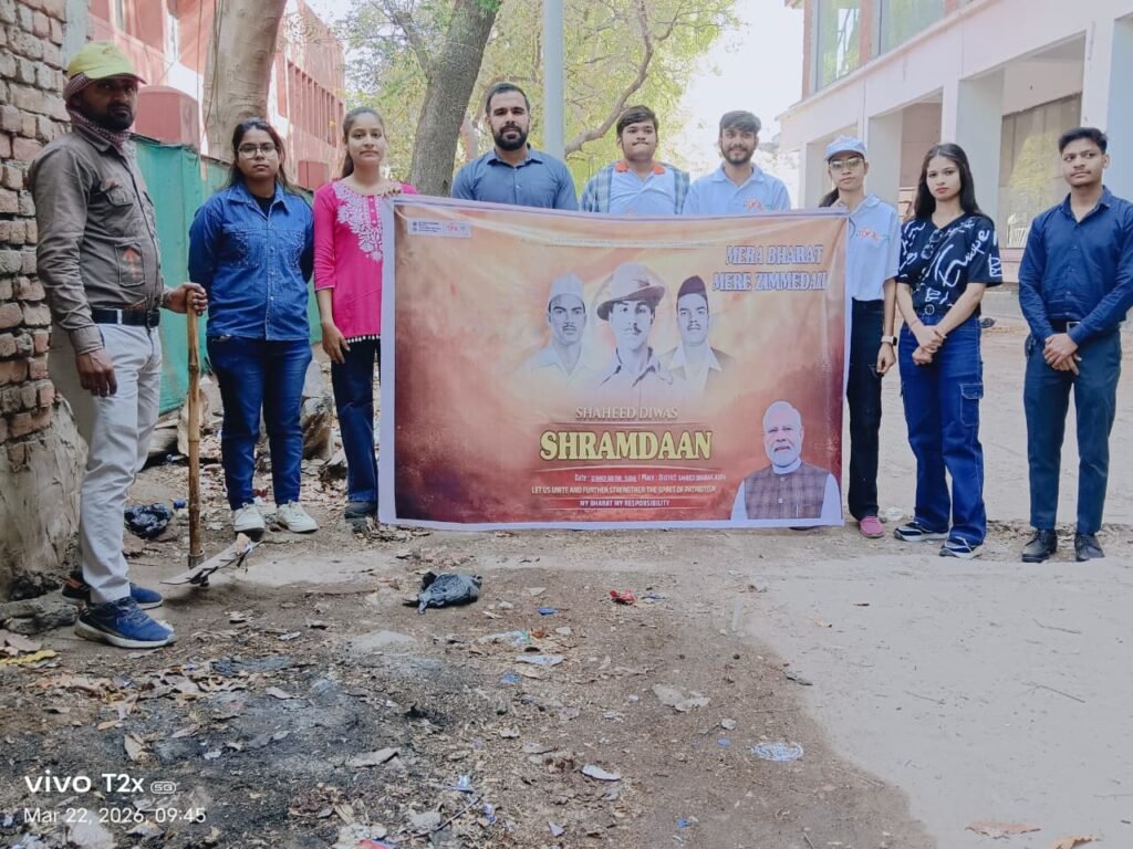 आगरा : शहीद दिवस के अवसर पर युवा कार्यक्रम एवं खेल मंत्रालय, भारत सरकार के मार्गदर्शन में संचालित माय भारत के तत्वावधान में शहीद स्मारक पार्क तथा उसके आसपास के क्षेत्रों में व्यापक श्रमदान एवं स्वच्छता अभियान का आयोजन किया गया। कार्यक्रम के माध्यम से शहीदों को श्रद्धांजलि अर्पित करते हुए युवाओं में राष्ट्रभक्ति, सामाजिक उत्तरदायित्व और स्वच्छता के प्रति जागरूकता बढ़ाने का प्रयास किया गया।