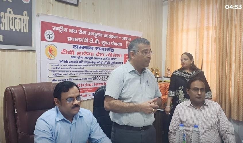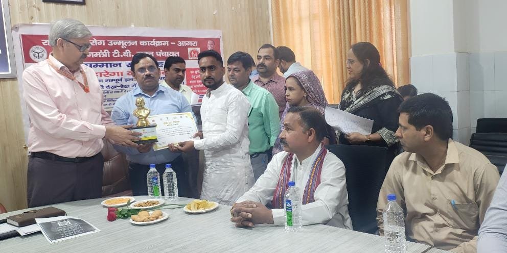 विश्व क्षय रोग दिवस के अवसर पर जनपद आगरा में टीबी मुक्त ग्राम पंचायतों के प्रधानों का सम्मान समारोह आयोजित किया गया। जिलाधिकारी अरविन्द मल्लपा बंगारी के निर्देशन में मुख्य चिकित्सा अधिकारी कार्यालय सभागार में आयोजित कार्यक्रम में वर्ष 2025 में घोषित 47 टीबी मुक्त ग्राम पंचायतों के ग्राम प्रधानों को सम्मानित किया गया।