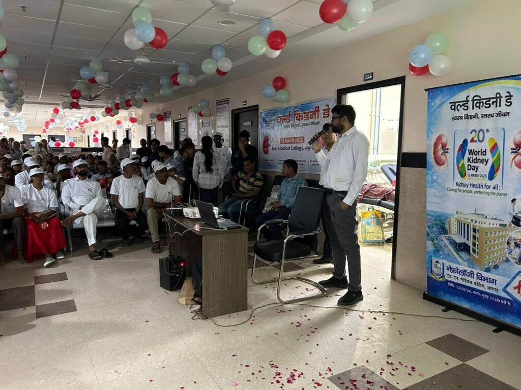 आगरा। गुर्दा रोग ‘साइलेंट किलर’ है और समय पर जांच, सही जानकारी तथा बेहतर जीवनशैली अपनाकर ही इससे बचाव किया जा सकता है। इसी संदेश के साथ गुरुवार को एस.एन. मेडिकल कॉलेज आगरा के PMSSY ब्लॉक स्थित नेफ्रोलॉजी विभाग में ‘विश्व गुर्दा दिवस 2027’ के अवसर पर एक भव्य जागरूकता कार्यक्रम आयोजित किया गया।