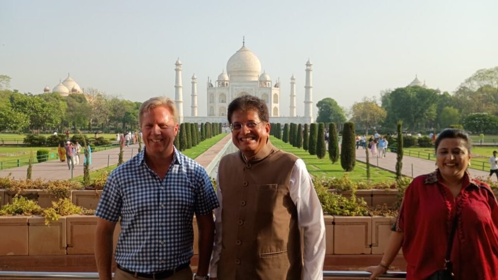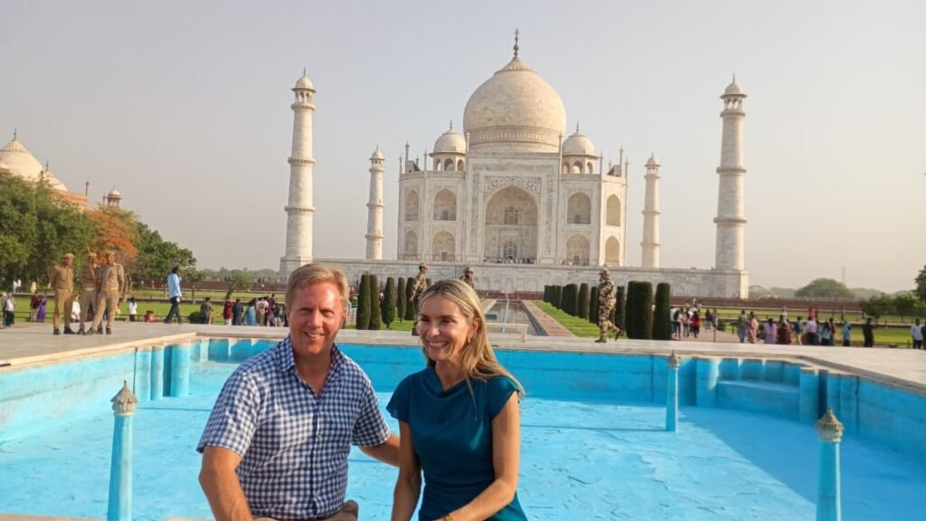 न्यूज़ीलैंड सरकार के व्यापार एवं निवेश मंत्री टॉड मेक क्ले ताज दीदार के दाैरान फोटो शूट कराते।