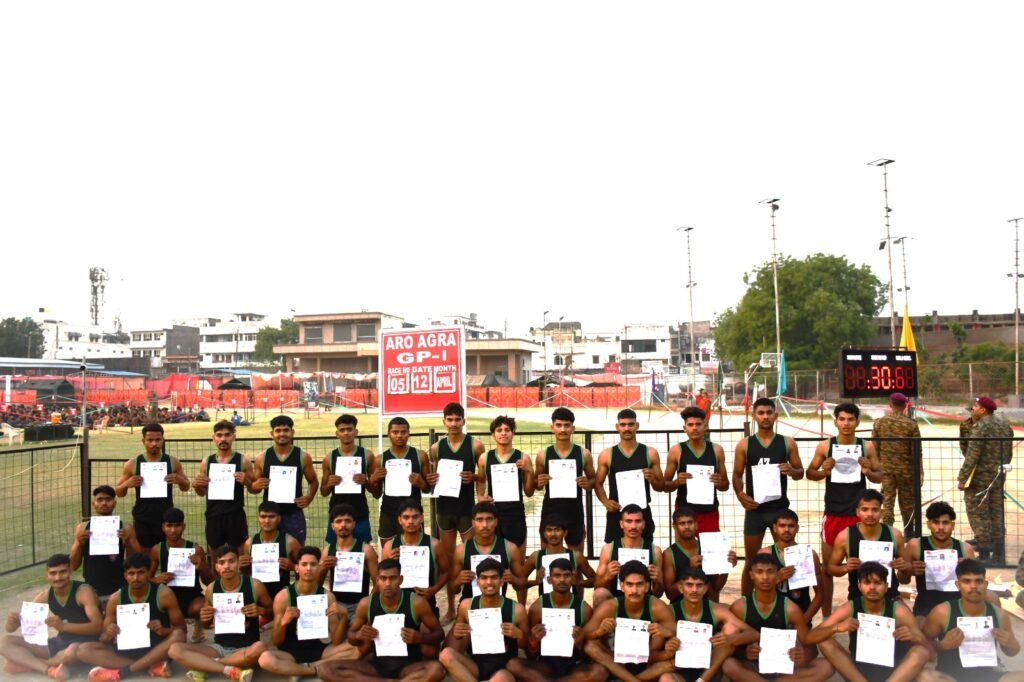 आगरा। आगरा के एकलव्य स्पोर्ट्स स्टेडियम में आयोजित अग्निवीर भर्ती रैली में रविवार को अलीगढ़ और मथुरा के करीब 1000 युवाओं ने भाग लेकर अपना दमखम दिखाया, जिसमें से लगभग 800 अभ्यर्थी शारीरिक दक्षता और स्क्रीनिंग प्रक्रिया में सफल होकर अगले चरण चिकित्सीय परीक्षण के लिए चयनित हुए, जबकि पूरी भर्ती प्रक्रिया सेना के निर्धारित मानकों के अनुरूप पारदर्शी, निष्पक्ष और सख्त निगरानी में संपन्न कराई जा रही है।