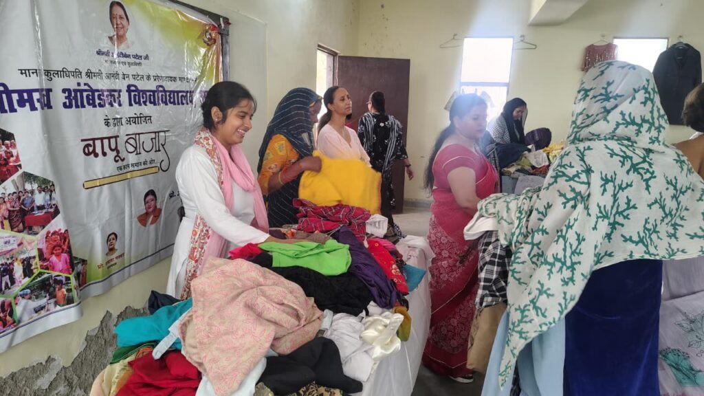 आगरा। डॉ. भीमराव आंबेडकर विश्वविद्यालय ने सामाजिक सरोकारों को साकार करते हुए स्वामी विवेकानंद परिसर स्थित गृह विज्ञान संस्थान में “बापू बाजार” का सफल आयोजन किया। इस पहल का उद्देश्य आर्थिक रूप से कमजोर वर्ग, विशेषकर स्लम क्षेत्रों में रहने वाले परिवारों को गुणवत्तापूर्ण कपड़े और आवश्यक घरेलू सामग्री न्यूनतम दरों पर उपलब्ध कराना था।