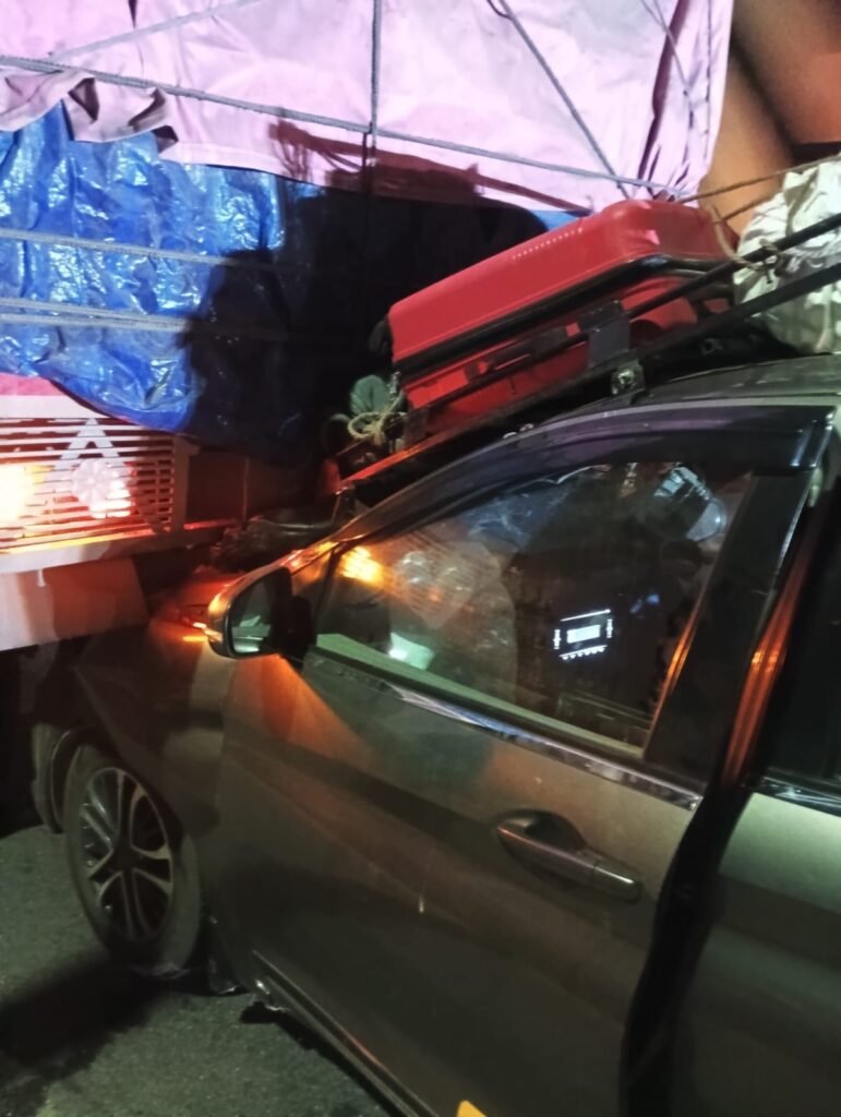 बताया गया है कि इसी दौरान आगे चल रहे एक ट्रक से उनकी कार पीछे से जा टकराई। टक्कर इतनी तेज थी कि कार का अगला हिस्सा बुरी तरह क्षतिग्रस्त हो गया। हादसे के बाद कुछ समय के लिए मौके पर अफरा-तफरी का माहौल बन गया। कार सवार घबरा गए, लेकिन राहत की बात यह रही कि किसी को गंभीर चोट नहीं आई।