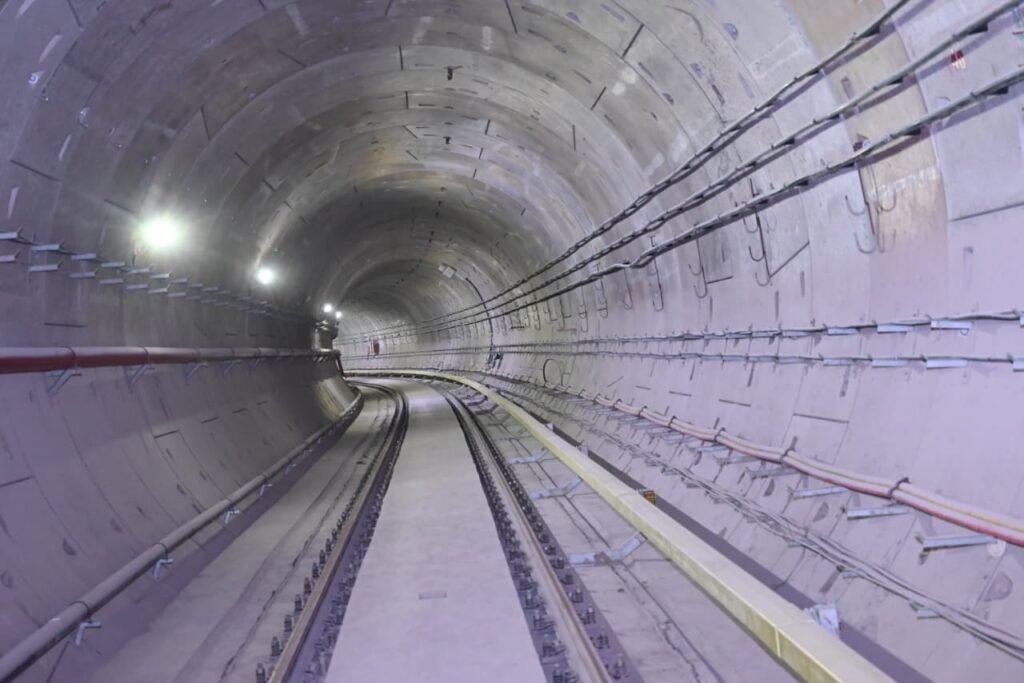 भूमिगत मेट्रो ट्रैक निर्माण एक जटिल तकनीकी प्रक्रिया है। सबसे पहले स्टेशन का निर्माण किया जाता है। इसके बाद लॉन्चिंग शाफ्ट तैयार कर टनल बोरिंग मशीन (टीबीएम) को भूमिगत भेजा जाता है, जिससे गोलाकार टनल तैयार होती है। चूंकि टनल का आकार गोल होता है, इसलिए सीधे ट्रैक बिछाना संभव नहीं होता। इसके लिए ट्रैक स्लैब की कास्टिंग कर समतल सतह बनाई जाती है, जिस पर बैलास्टलेस ट्रैक बिछाया जाता है। इस प्रक्रिया में कॉन्क्रीट बीम (प्लिंथ बीम) पर पटरियां स्थापित की जाती हैं, जो पारंपरिक ट्रैक की तुलना में अधिक मजबूत और कम मेंटेनेंस वाली होती हैं।