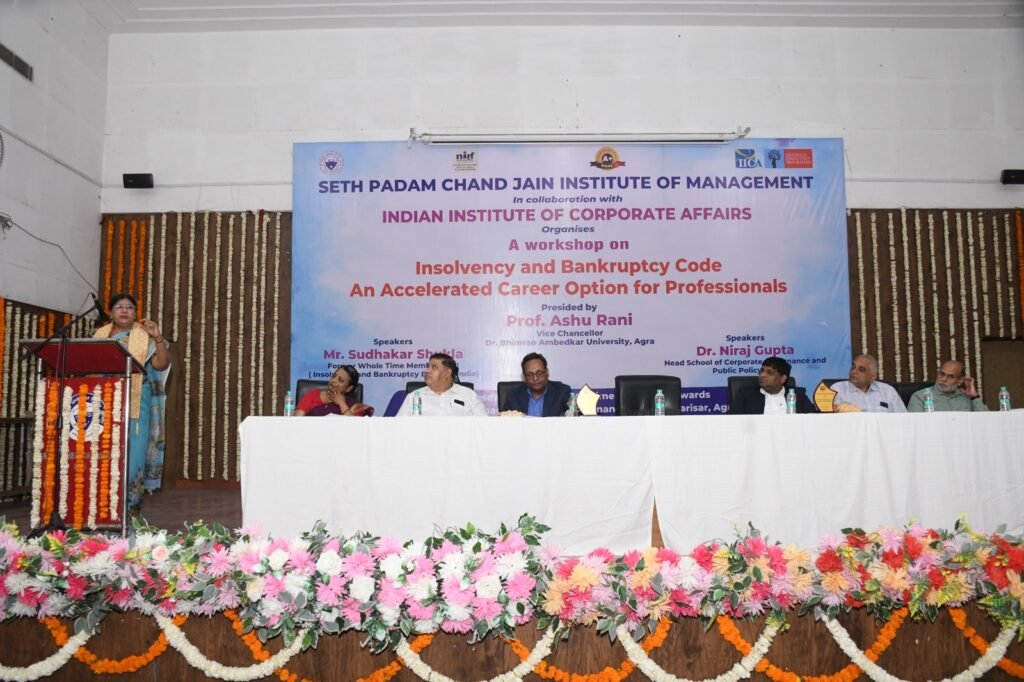 आगरा। डॉ. भीमराव आंबेडकर विश्वविद्यालय के सेठ पदमचंद जैन प्रबंध संस्थान ने भारतीय कॉर्पोरेट कार्य संस्थान के सहयोग से “इन्सॉल्वेंसी एंड बैंकरप्सी कोड: एन एक्सेलेरेटेड करियर ऑप्शन फॉर प्रोफेशनल्स” विषय पर कार्यशाला आयोजित की। इस कार्यक्रम में छात्रों को दिवाला और शोधन अक्षमता संहिता (IBC) की प्रक्रियाओं, कॉर्पोरेट गवर्नेंस और इस क्षेत्र में करियर विकल्पों की जानकारी दी गई। कार्यशाला का उद्देश्य छात्रों को व्यावहारिक कौशल, सरकारी योजनाओं और स्टार्टअप अनुभव से भविष्य के लिए तैयार करना था।