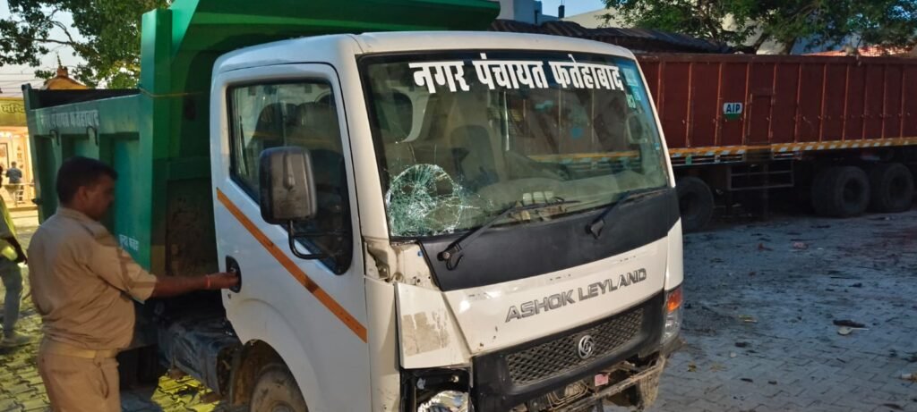 फतेहाबाद। फतेहाबाद के बिलौनी गांव के पास नगर पंचायत फतेहाबाद के कूड़ा डालने वाले ट्रक ने बाइक में टक्कर मार दी। हादसे में देवेंद्र (23) की मौके पर मौत हो गई और उसके चचेरे भाई रोहित उर्फ मोनू (22) गंभीर रूप से घायल हो गए। ट्रक चालक वाहन छोड़कर फरार हो गया। पुलिस ने शव को पोस्टमार्टम के लिए भेजा और ट्रक को कब्जे में ले लिया।