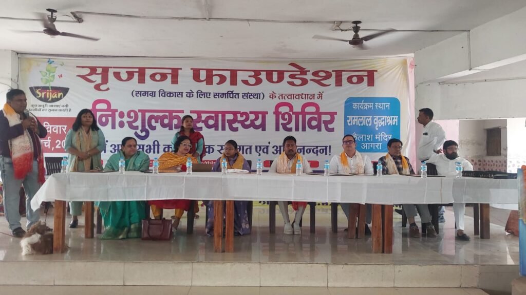 आगरा के सिकंदरा स्थित रामलाल वृद्धाश्रम में सृजन फाउंडेशन के तत्वावधान में एक दिवसीय निःशुल्क चिकित्सा शिविर का आयोजन किया गया। इस शिविर का उद्देश्य वृद्धाश्रम में निवास कर रहे बुजुर्गों को बेहतर स्वास्थ्य सेवाएं उपलब्ध कराना था। शिविर में सामान्य चिकित्सा, नेत्र और दंत रोगों की जांच की गई तथा आवश्यक दवाओं का वितरण किया गया। इस सेवा कार्य से बुजुर्गों के चेहरे पर संतोष और खुशी साफ नजर आई।
