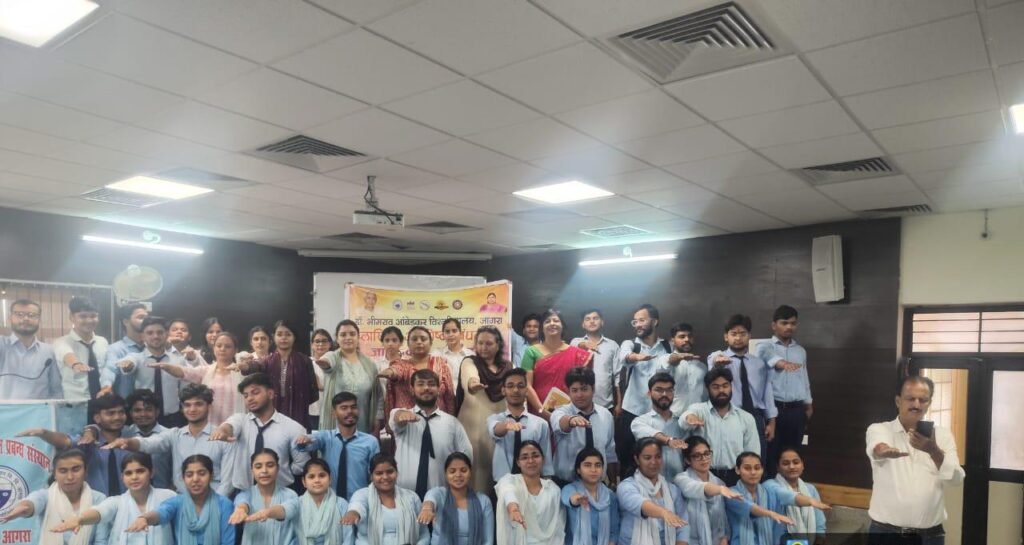आगरा। डॉ. भीमराव अंबेडकर विश्वविद्यालय के खंदारी परिसर स्थित स्कूल ऑफ लाइफ साइंसेज के पर्यावरण अध्ययन विभाग के विद्यार्थियों ने “प्लास्टिक अवशिष्ट प्रबंधन” विषय पर एक व्यापक जागरूकता अभियान चलाकर समाज को पर्यावरण संरक्षण का संदेश दिया। इस अभियान के माध्यम से छात्रों ने बढ़ते प्लास्टिक प्रदूषण के दुष्प्रभावों, इसके प्रबंधन के नियमों और समाधान के उपायों पर विस्तार से जानकारी दी। कार्यक्रम में विद्यार्थियों ने विभिन्न संस्थानों में जाकर लोगों को जागरूक किया और सिंगल-यूज प्लास्टिक के उपयोग को कम करने की अपील की।